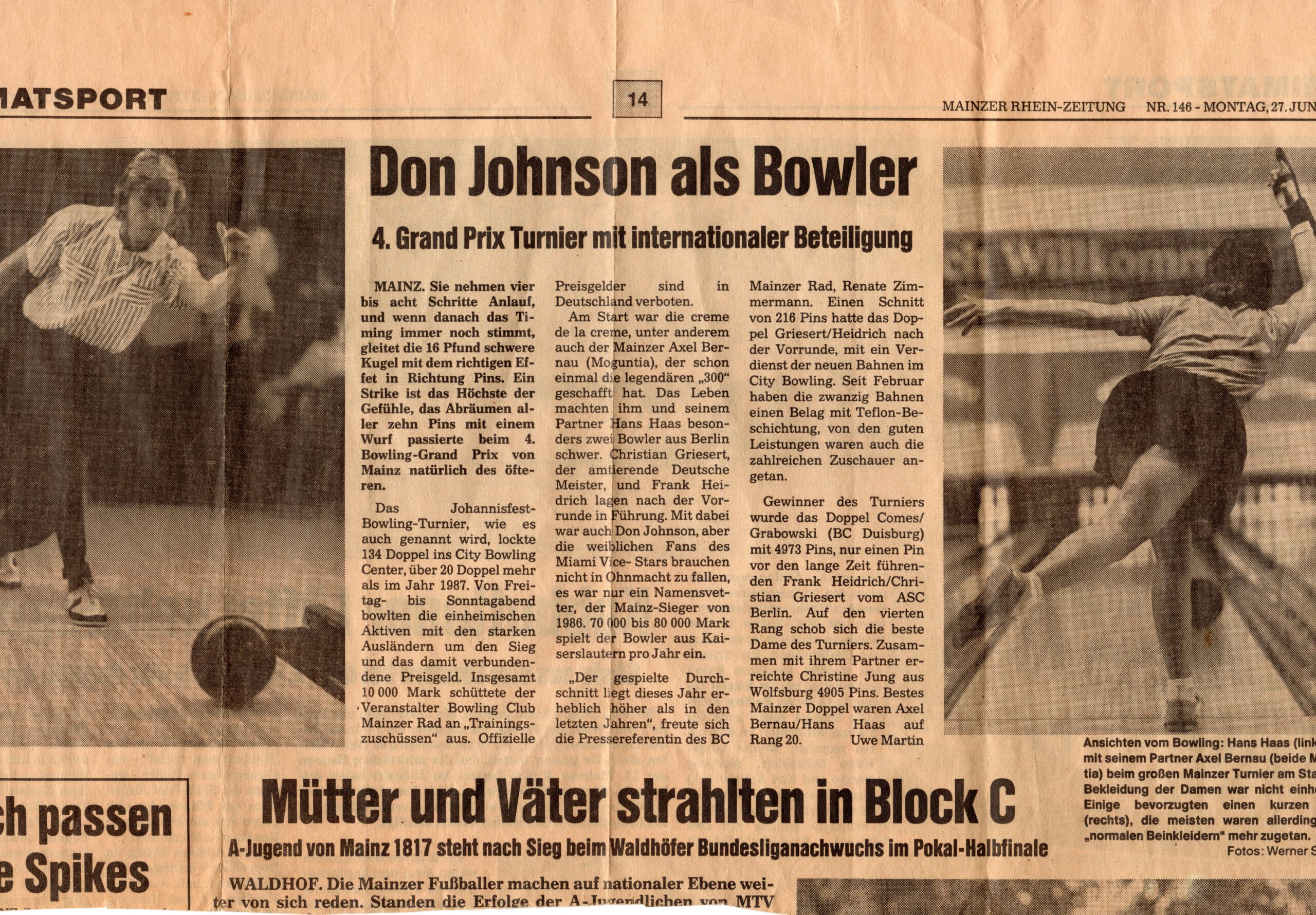 auf dieser Seite möchten wir euch an Bildern und Erinnerungen zum Thema Bowling in Mainz teilhaben lassen. Bilder der ersten Bowling-Tage in Mainz damals in der „Excel Bowling“. Schnappschüsse von Mitgliedern des BV Mainz und Zeitungsartikel, die teilweise mit großen Reisen verbunden waren.